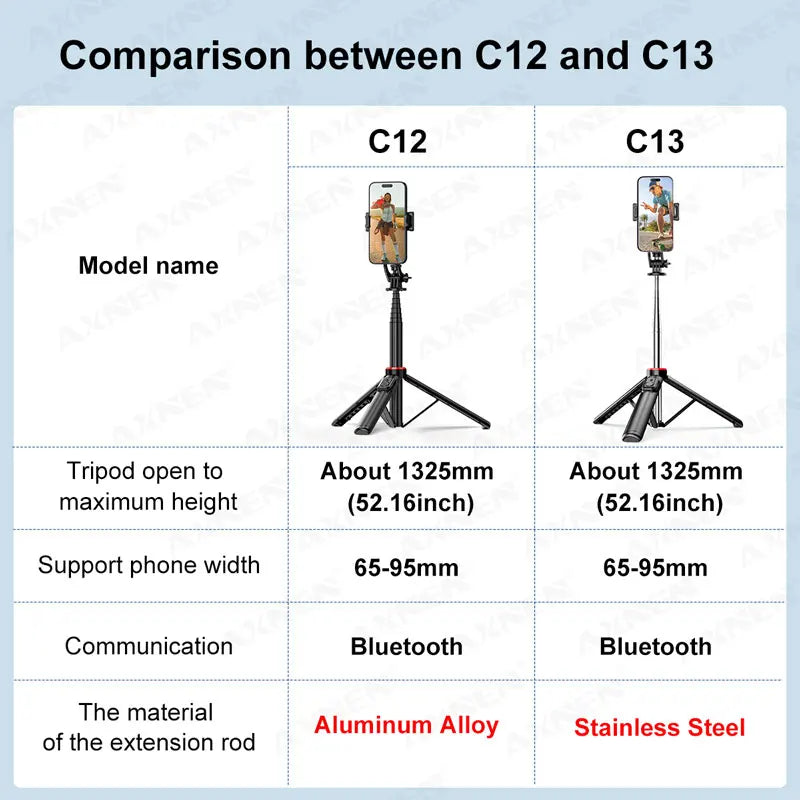 Tanto o C12 quanto o C13 são tripés multifuncionais para selfies com vários ângulos de disparo, enriquecendo sua experiência de disparo.