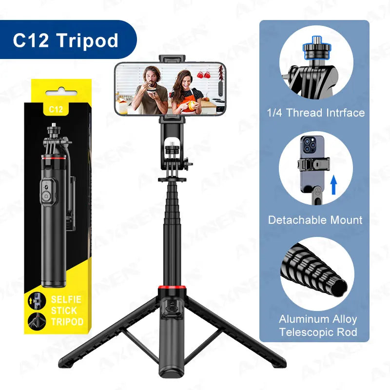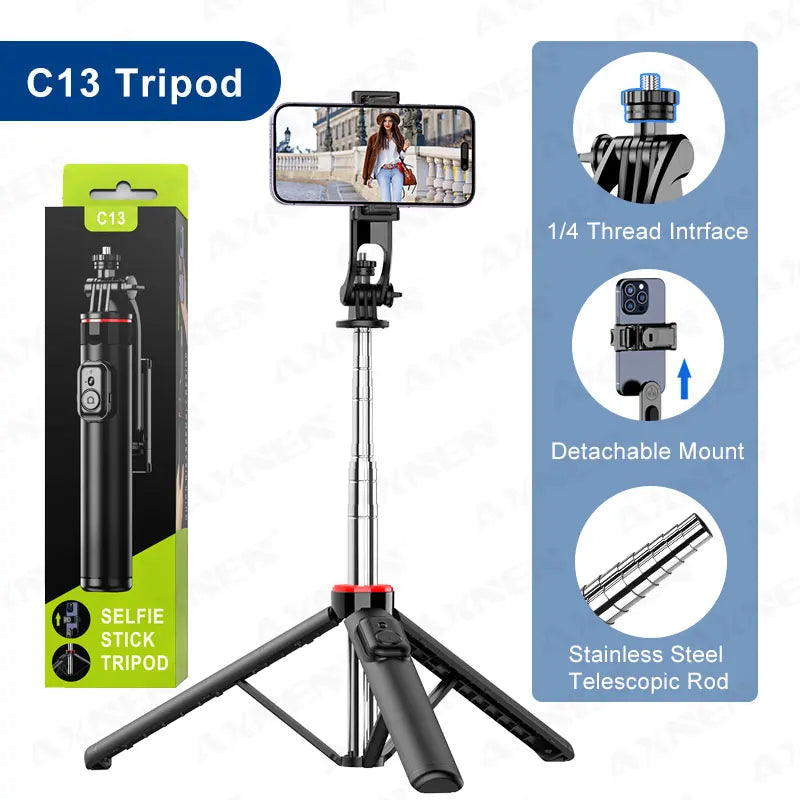 2024 novo AXNEN Mobile Phone Tripé C12/C13 Tipods para Celular Gopro Action Camera, Suporte de 1325mm com Controle Remoto Bluetooth Sem Fio para Live