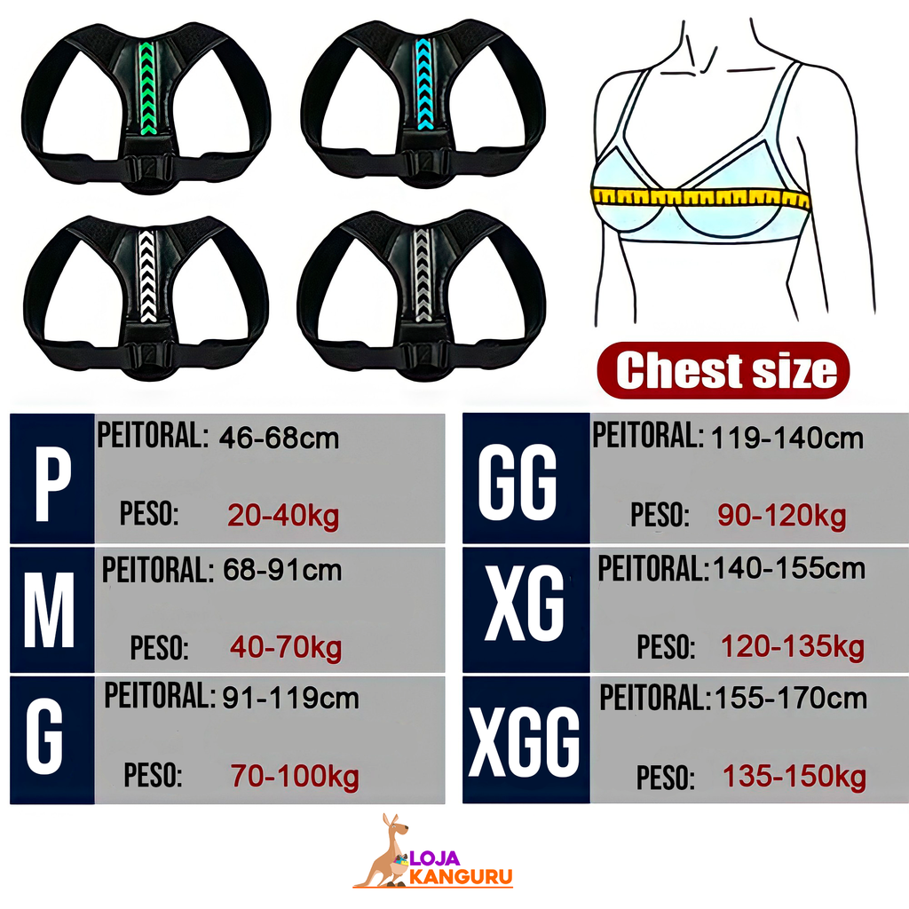 Corretor de Postura Ajustável fortalece sua postura mantendo sua coluna alinhada, direcionando suas costas para a posição correta e natural, assim combatendo as dores nas costas de um jeito bem simples.