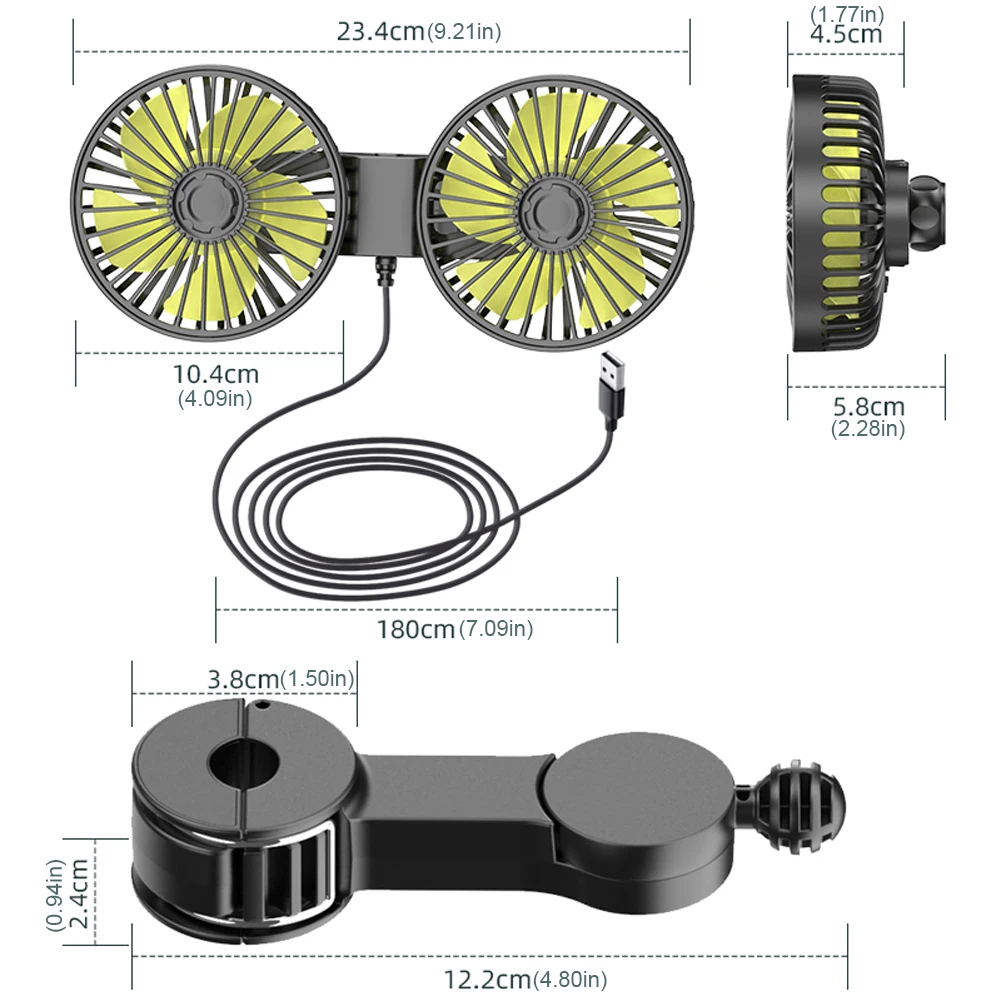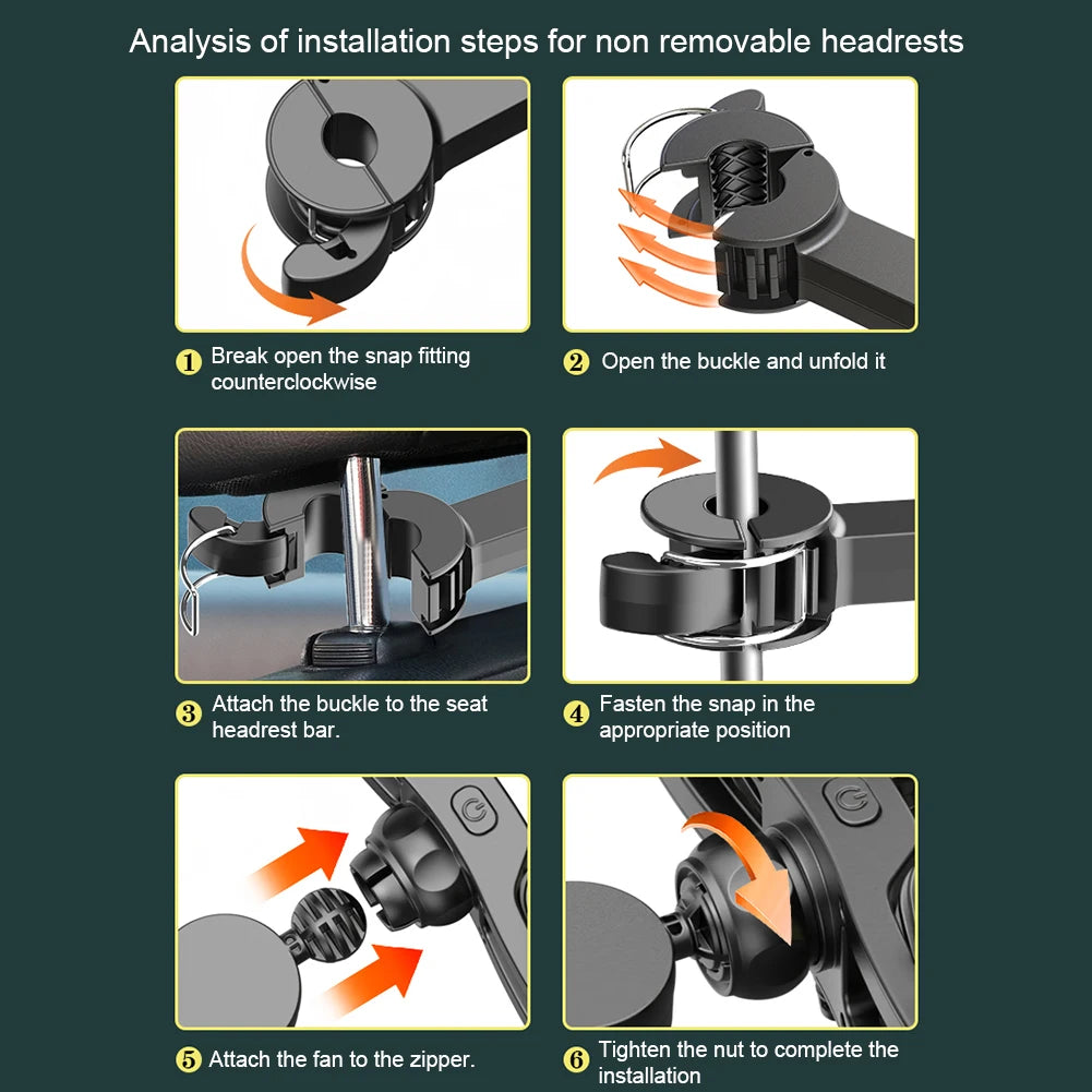 4. Robusto e sem ruído: este poderoso ventilador de carro vem com um encaixe de trava firme, garantindo estabilidade e eliminando qualquer ruído durante a condução. Oferece três engrenagens ajustáveis para encaixar hastes de apoio de cabeça de diferentes tamanhos, garantindo um ajuste perfeito e seguro.