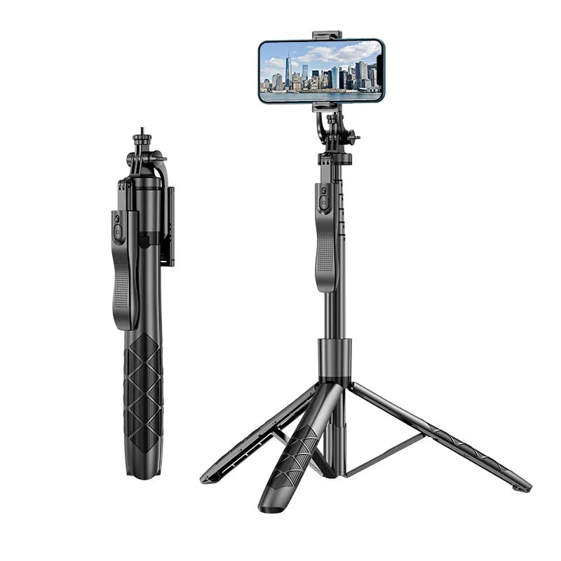 Design de controle remoto sem fio, com função tradicional de bastão de selfie quando instalado, é mais conveniente tirar selfies quando removido, e fotos de grupo não serão mais perdidas.
