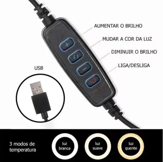 Ring light para gravações e selfies. Suas fotos e vídeos com qualidade profissional!